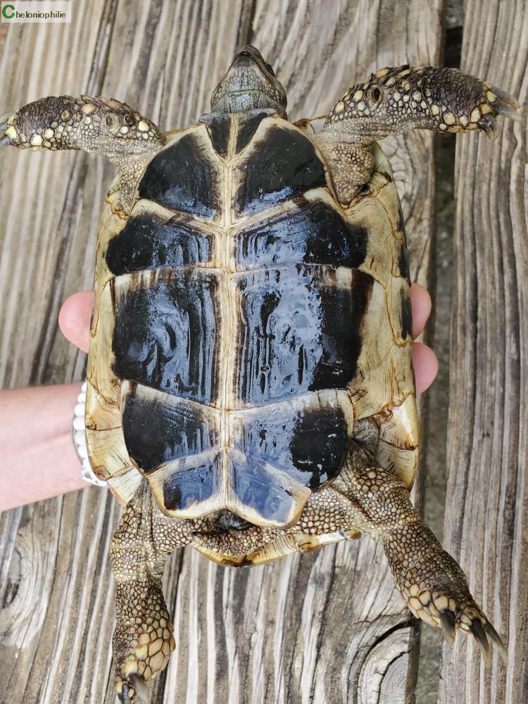 C'est possible qu'elle soit hybridée. Nous ne la cédons pas pour la reproduction mais pour qu'un amoureux des tortues prenne notre suite...